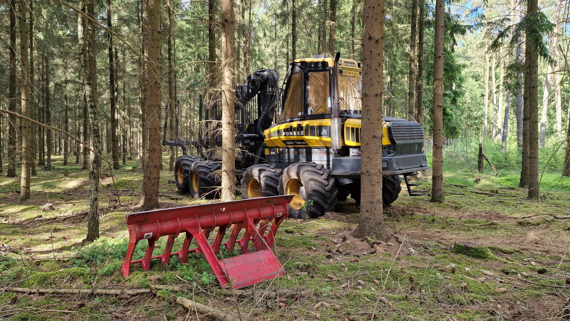 Zum Einsatz kommt ein Ponsse Buffalo mit K100 Kran, abnehmbarem Heck und Drehrunge für Langholz.
